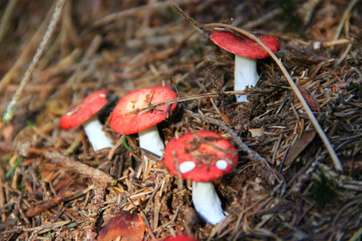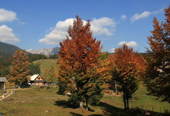 Pokljuške planine so čudovite ob vsakem letnem času. Nudijo nam pestrost na vsakem koraku. Tokrat sem najprej občudovala gozdna tla. Gobe vseh barv in oblik, na mahu, med iglicami in praprotjo. Očitno so strupene, ker jih drugače gotovo ne bi bilo več.