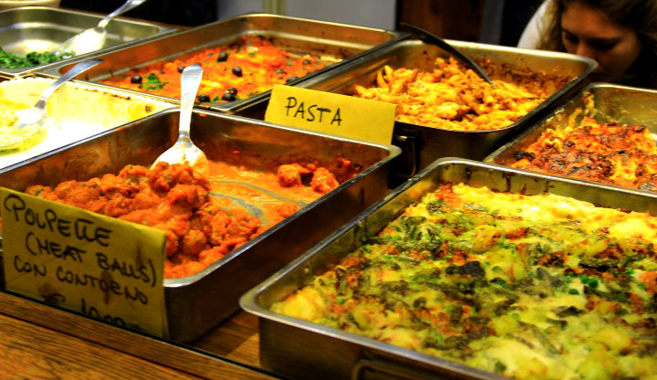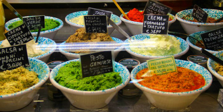Sprehod po mestni tržici San Lorenco je raj za gurmane. Ni da ni. Siri, ribe,meso, testenine, zelenjava, sušeni paradižniki, gobe, … vse sveže in vabljivo. Da pa ne bi samo gledali, smo tudi preizkusili te dobrote v različnih izvedbah.