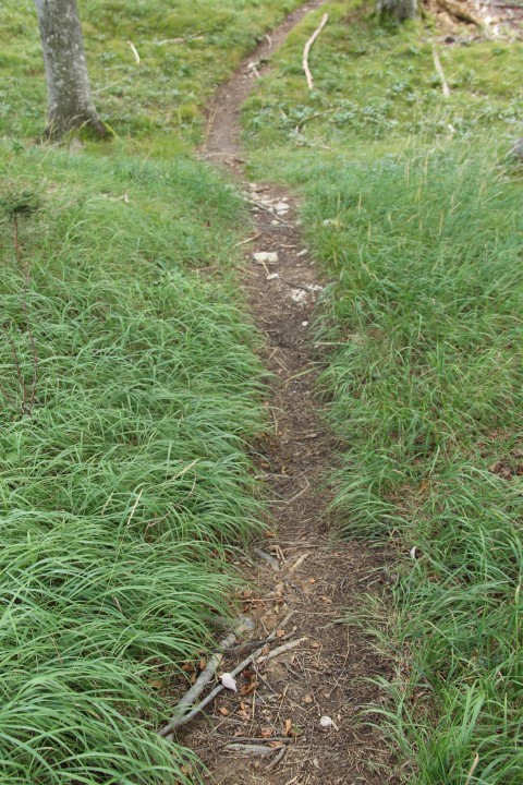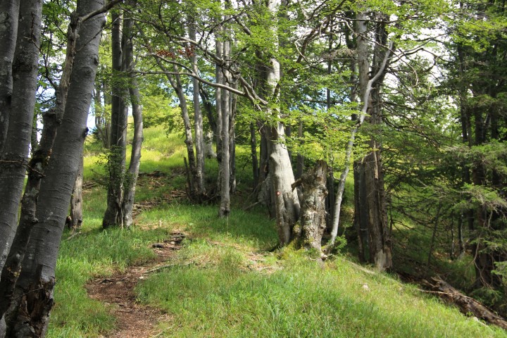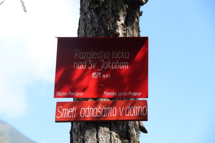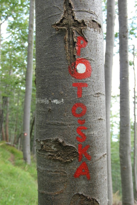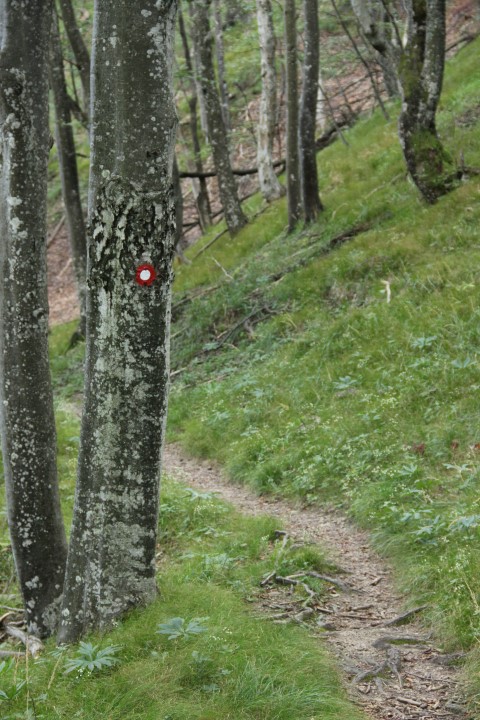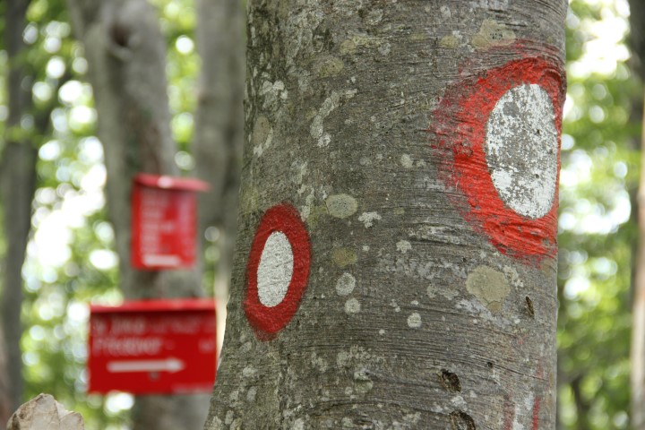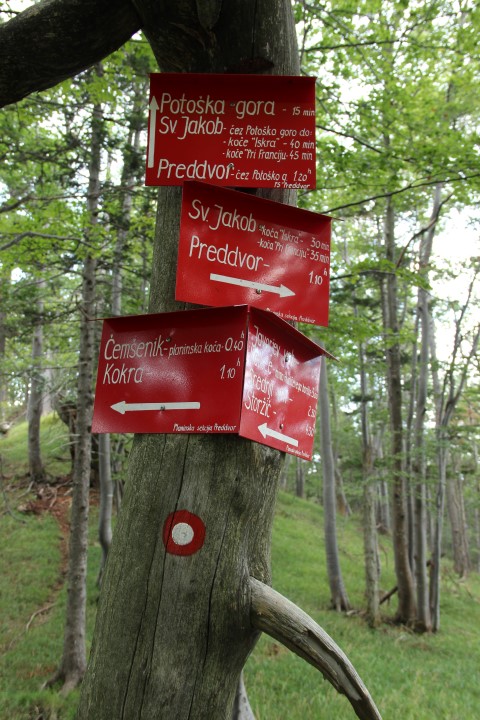 Pot je dobro označena, saj ponekod markacij skoraj ne moreš prešteti. Na spodnji sliki jih je pet.