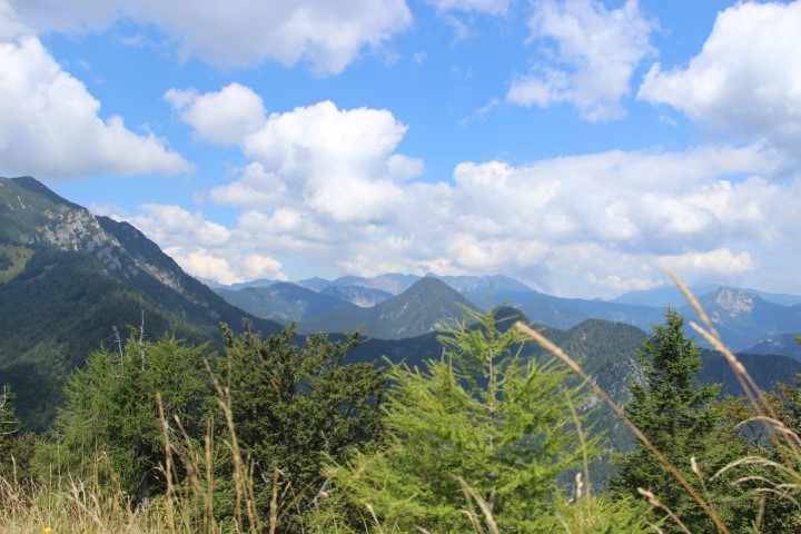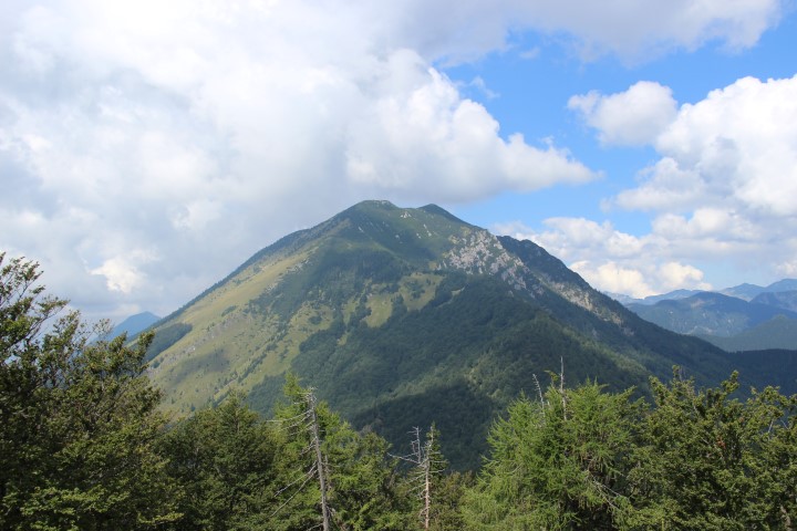 Pogled proti Srednjemu vrhu, za njim pa se skriva Storžič.