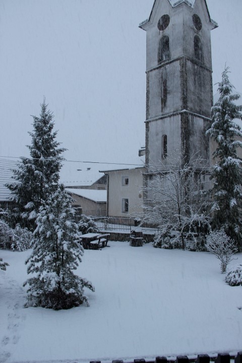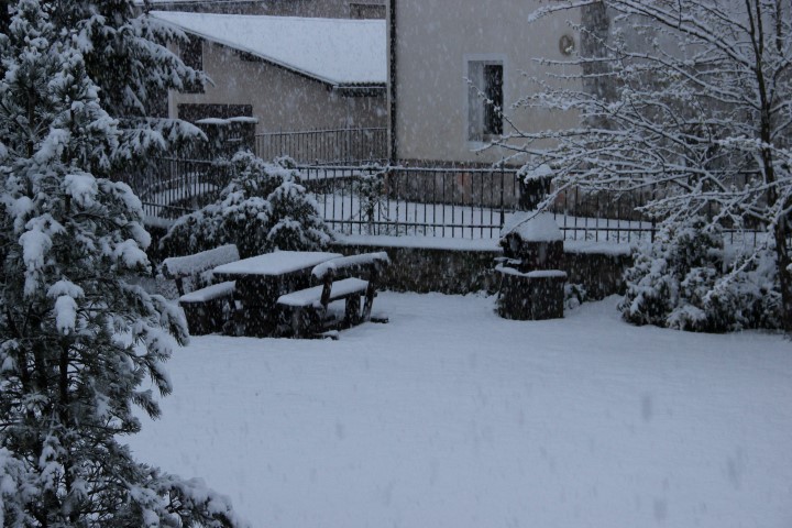 Zvečer sneženje še vedno ne odneha. Le od kod ta vremenska motnja? Celo ptički so se poskrili. Nihče se ne oglaša…