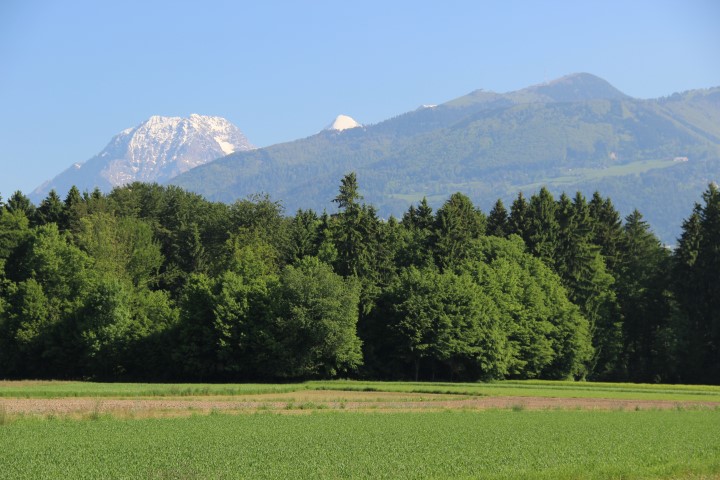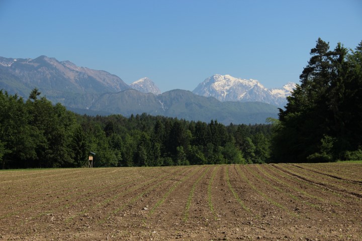 V ozadju že Kamniške planine. Brana in Planjava, v ospredju pa Kamniški vrh.