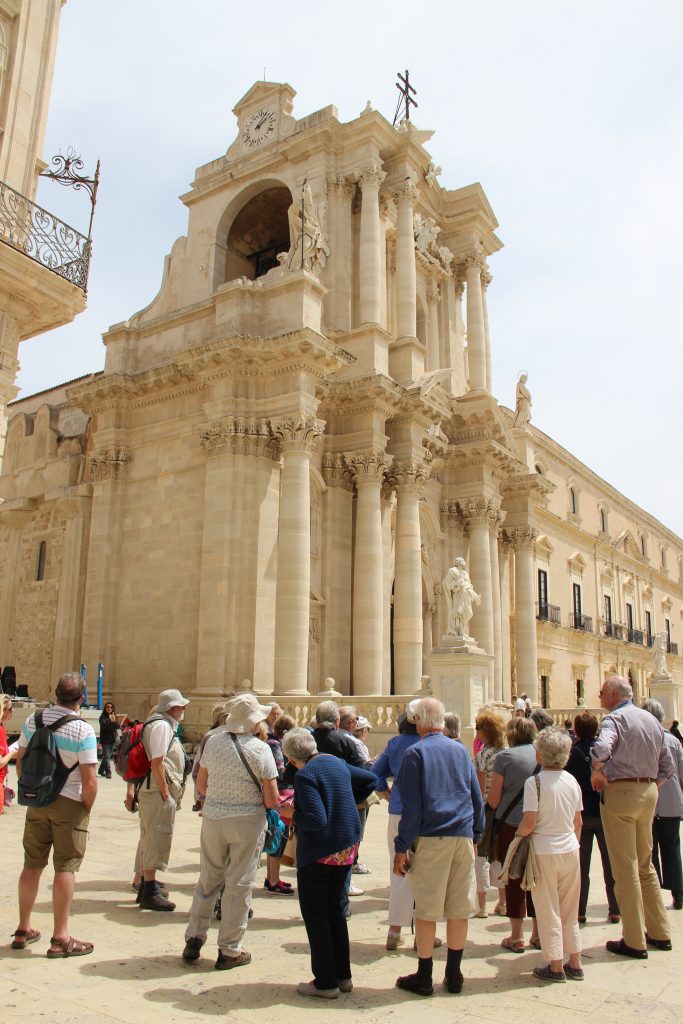 Lepo je brskati po spominih in na ta deževen turoben dan, sem se vrnila na spomladanski izlet na Sicilijo. Obisk vzhodne obale Sicilije, kjer v slikovitem zalivu leži mesto- polno zgodovine, ki so jo krojili Grki že leta 734 pred našim štetjem.- Siracusa. Z prečkanjem mostu smo prešli na otoček Ortigia, kjer je najstarejši del mesta. Uličice so živahne in se prepletajo kot niti v blagu.