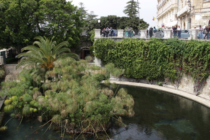 Izvir Aretusa – sladka voda priteče iz skale čisto blizu morja.