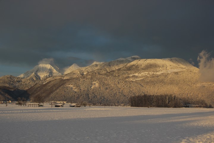 Storžič in Srednji vrh nas čuvata na severni strani.