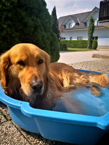 Zlati prinašalci obožujejo vodo. Pa ne samo čisto. Povsod se radi ohladijo. V lužah, potoku ali pa jezeru. Samo, da je mokro…