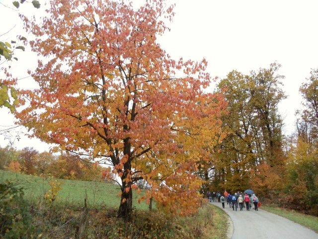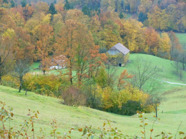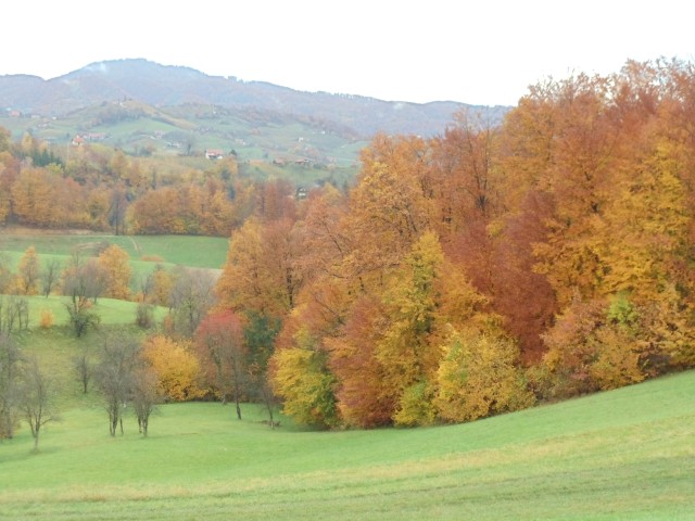 Narava je bila jesensko obarvana v zlato rjavih odtenkih. Če bi jo ožarilo še sonce, bi bilo vse že kar kičasto lepo.