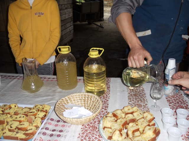 Domačini so nas prijazno sprejeli in nas pogostili z dobrotami tamkajšnjih kmetij. Vino in mošt nista nikjer manjkala.