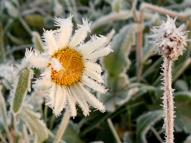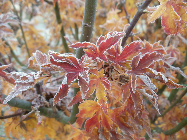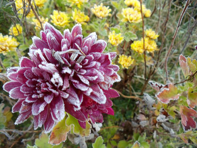 Na vrtu pa je jutranja slana še vedno krasila zadnje odtenke pisanih barv poslavljajočega se cvetja in zelenja.
