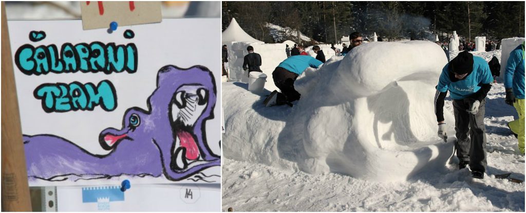Poskrbeli so za orodje, načrte, zabavo in ogrevanje. Domišljije polni tekmovalci, so zagnano gradili, gladili, rezali in rezbarili po snegu. Vmes je bilo slišali petje, harmoniko, kitaro ter navodila sotekmovalcem v različnih jezikih in narečjih.