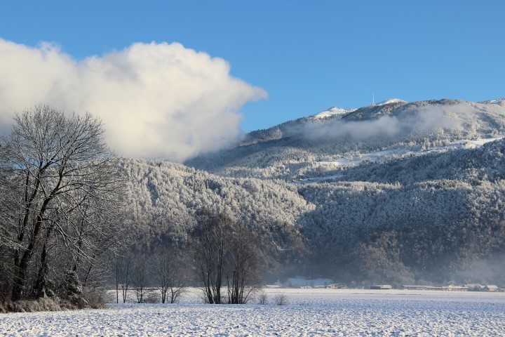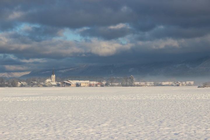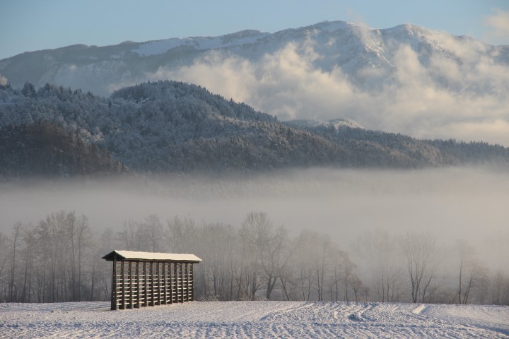 Megla se je le počasi umikala iz naših krajev in slike se postajale čistejše in jasnejše. V ozadju Brnik in Storžič v megli.