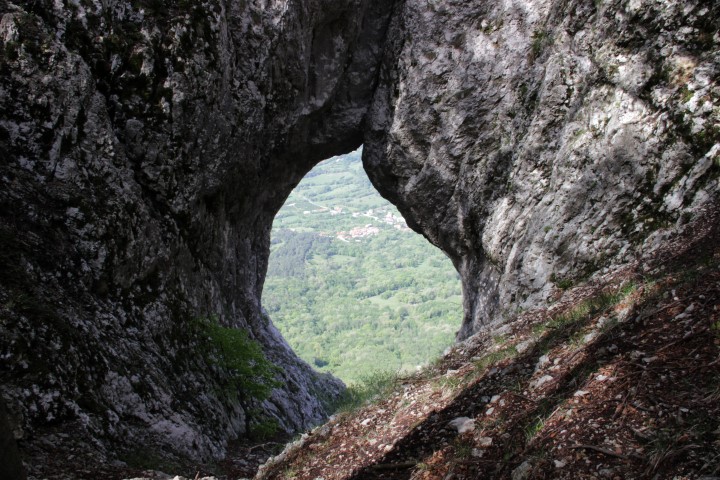 Naravna znamenitost Slovenije – Otliško okno. Kraški pojav, ki se nahaja na robu Trnovske planote.